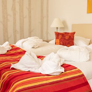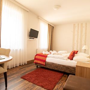 Die geräumigen Doppelzimmer sind modern eingerichtet, besonders die Qualität der Betten wird von vielen Gästen geschätzt.