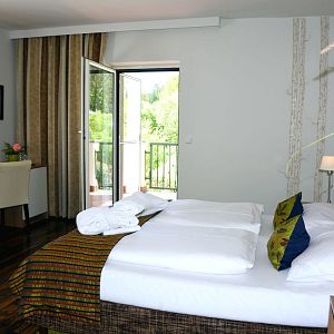 The spacious double rooms are modernly furnished, especially the quality of the beds is appreciated by many guests. From the balcony you have a view of the Sirius energy world and through the Thayatal.